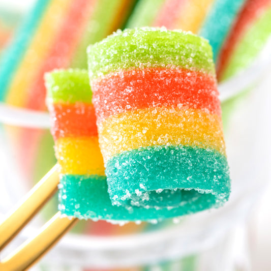 Sour Strips Rainbow Gummies with Sweet & Sour Fruit Juice Flavor