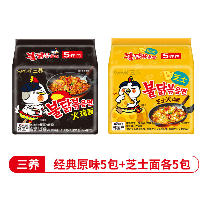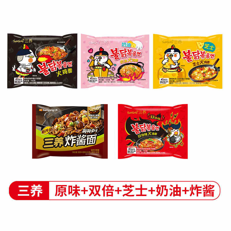 [10 bags] Original 2 + Double Spicy 2 + Cheese Noodles 2 + Cream Noodles 2 + Jajanjangmiso Noodles 2 - Unavailable